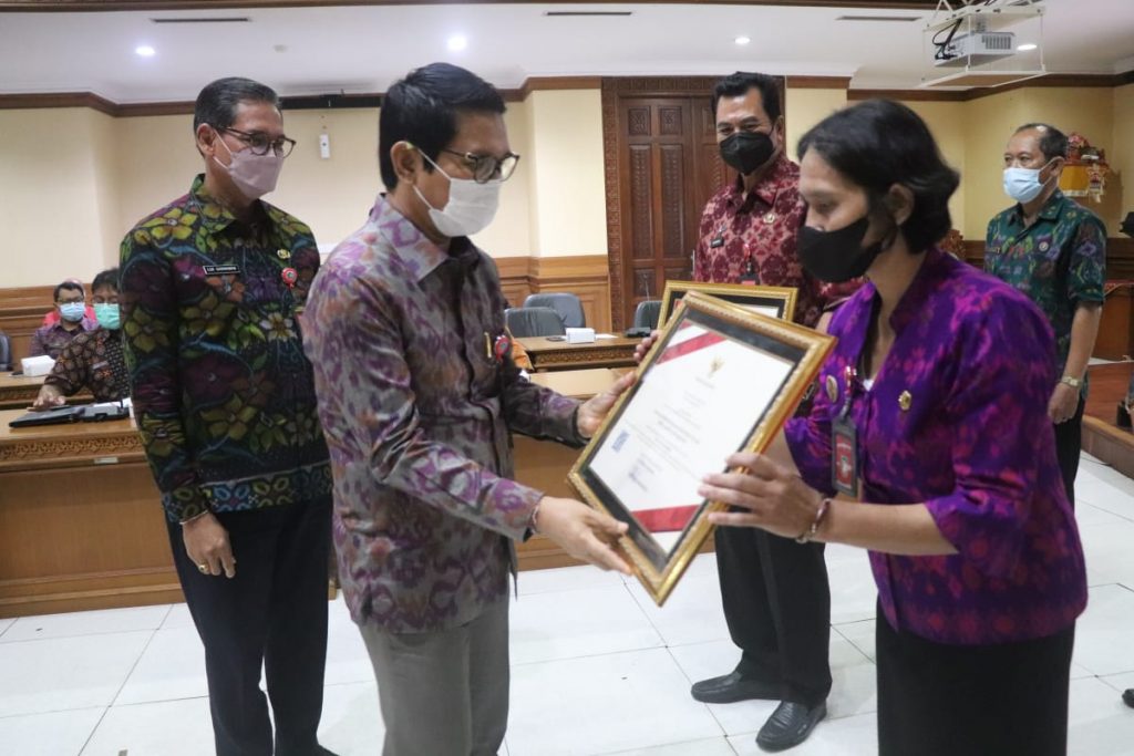 Sementara itu Asisten Administrasi Umum Cok Raka Darmawan melaporkan, daftar penerima penghargaan Evaluasi Kepatuhan Pelayanan Publik di Kabupaten Badung yakni, DPMPTSP Kab. Badung Indeks Pelayanan Publik dengan Predikat Pelayanan Prima, Disdukcapil Badung dengan Predikat Pelayanan Prima, Dinas PMD Badung indeks dengan Predikat Pelayanan Prima, Camat Kuta Selatan indeks Pelayanan Publik dengan Predikat Sangat Baik, Bapenda Badung Indeks Pelayanan Publik dengan Predikat Sangat Baik, Sekretariat Daerah Kab. Badung Indeks Pelayanan Publik dengan Predikat Sangat Baik, Dinas PPKBP3A Badung Indeks Pelayanan Publik dengan Predikat Sangat Baik, RSUD Mangusada Badung Indeks Pelayanan Publik dengan Predikat Sangat Baik, BPBD Badung Indeks Pelayanan Publik dengan Predikat Sangat Baik.
