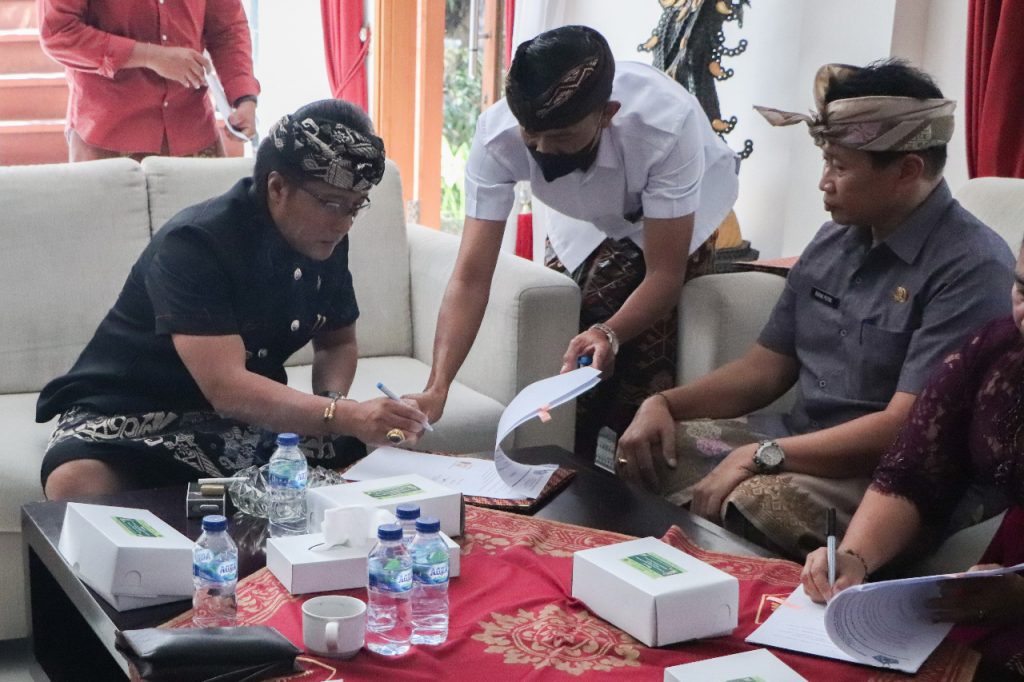 Bupati Badung I Nyoman Giri Prasta didampingi oleh Asisten II Bidang Perekonomian dan Pembangunan Kab. Badung Ida Bagus Gede Arjana dan Kepala Bagian Hukum dan HAM Anak Agung Asteya Yudhya menyerahkan secara simbolis Surat Keputusan (SK) Bupati Badung Nomor 581/01/HK/2022 tentang Pengangkatan Dewan Pengawas Perusahaan Umum Daerah (Perumda) Pasar Mangu Giri Sedana Tahun 2022-2026, Kamis (4/8) bertempat di Rumah Jabatan Bupati Badung.