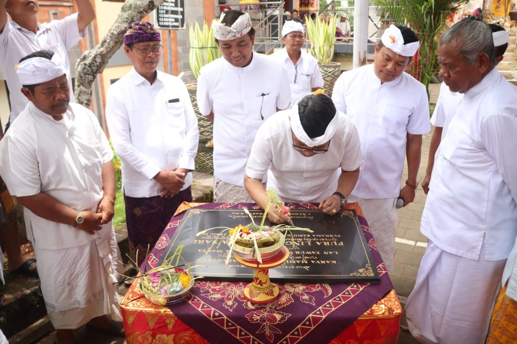 Sekretaris Daerah Kabupaten Badung I Wayan Adi Arnawa mewakili Bupati Badung menghadiri upacara Pecaruan Rsi Gana, Wraspati Kalpa Madya, Mupuk Pedagingan, Ngadegan Linggih Ida Bhatara Pura Lingga Bhuana Sari di Kantor Perbekel Desa Kutuh Kuta Selatan, Minggu (2/4). Upacara ini dipuput oleh Tri Sadaka (Tiga Sulinggih) Siwa, Budha, dan Bujangga. Ratu Pedanda Gede Bang Buruan Manuaba Griya Muding, Ida Pedanda Gede Bajra Sikara Yoga Griya Budha Saraswati Senapahan Kediri Tabanan, dan Ida Rsi Bujangga Waisnawa Putra Wirya Arda Nareswarya Griya Batur Bujangga Sari Sesetan. Turut hadir dalam kesempatan ini Anggota DPRD Provinsi I Wayan Disel Astawa, Anggota DPRD Badung I Wayan Loka Astika, Kadis Kebudayaan Kabupaten Badung I Gde Eka Sudarwitha, Camat Kuta Selatan I Ketut Gede Arta, Bendesa Adat Kutuh Jro Nyoman Mesir serta tokoh masyarakat setempat.
