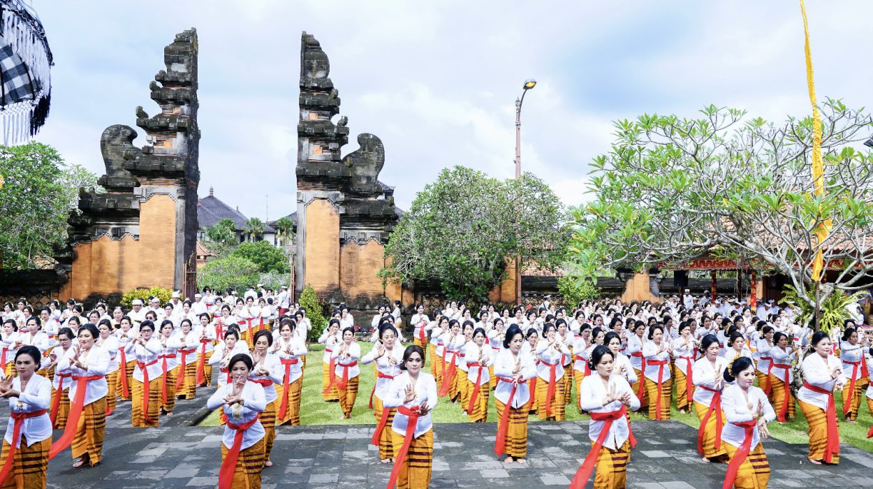 Tari Wali Rejang Giri Putri dipentaskan secara kolosal oleh TP PKK Kabupaten Badung dalam upacara Nyatur Rebah di Pura Lingga