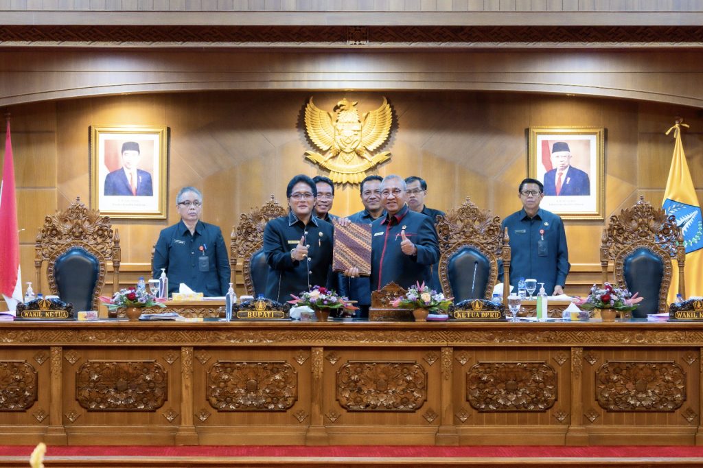 Kemudian terkait rancangan APBD Tahun Anggaran 2024, dikatakan Bupati bahwa seluruh substansi dari rangkaian pembahasan dokumen dalam penyusunan APBD sampai dengan penetapan APBD terintegrasi dalam satu kesatuan sistem yang dikendalikan oleh kementerian dalam negeri serta terkoneksi pula dengan kementerian keuangan. Dengan demikian, konsistensi dalam setiap tahapan pembahasan menjadi syarat mutlak dalam rangka transparansi dan akuntabilitas perencanaan dan penganggaran. “Pendapatan dan belanja daerah pada rancangan APBD tahun anggaran 2024 dirancang sebesar Rp 8.326.262.761.978 meningkat sebesar Rp. 2.265.794.650.654. atau 37% dari APBD induk Tahun Anggaran 2023 sebesar Rp. 6.060.468.111.324,” pungkasnya.