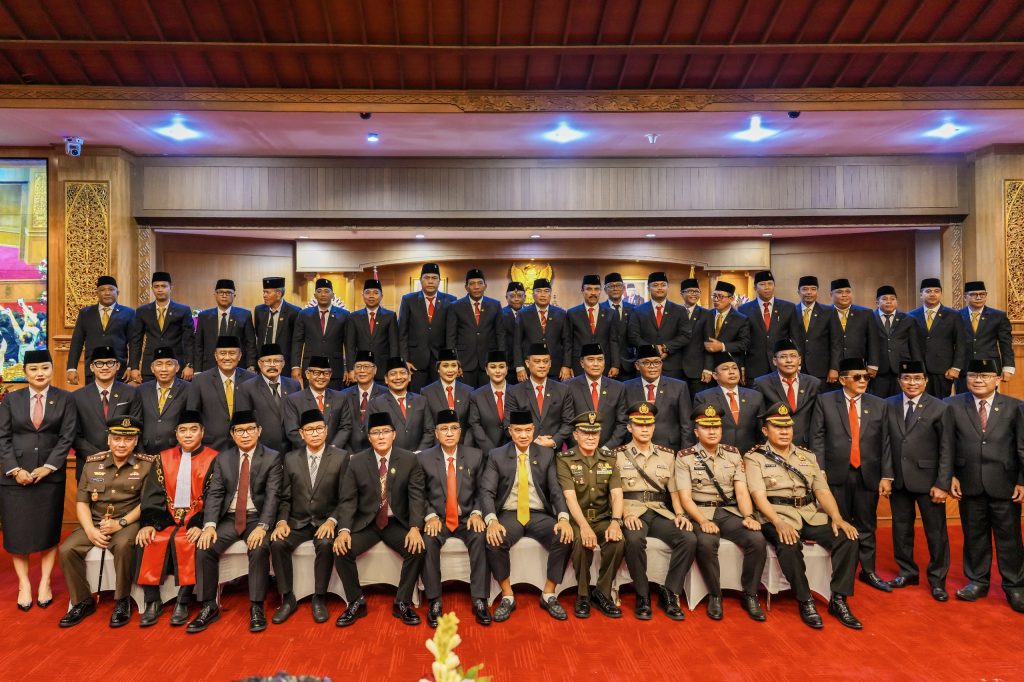 Sebanyak 45 Anggota DPRD Kabupaten Badung periode 2024-2029 secara resmi dilantik dan diambil sumpah/janjinya pada Rapat Paripurna DPRD Badung dengan agenda Peresmian Pemberhentian Anggota DPRD Badung periode 2019-2024 dan Peresmian Pengangkatan Anggota DPRD Badung periode 2024-2029, di ruang Sidang Utama Gosana, Kantor DPRD Badung, Senin (5/8). Acara pelantikan dihadiri Bupati Badung I Nyoman Giri Prasta, Wabup. I Ketut Suiasa, Anggota DPRD Badung 2019-2024, Anggota DPRD Badung terpilih 2024-2029, Forkopimda Badung, Sekda Badung I Wayan Adi Arnawa beserta Pejabat dilingkungan Pemkab Badung, Camat, KPU, Bawaslu, Ketua Organisasi Kewanitaan, Pimpinan Partai Politik, Perbekel/Lurah, Ketua BPD dan LPM se-Badung.