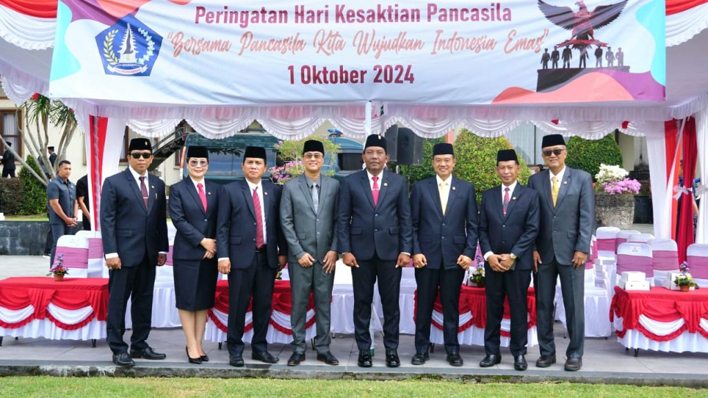Pemerintah Kabupaten Badung melaksanakan Upacara Peringatan Hari Kesaktian Pancasila di Lapangan Mangupraja Mandala, Puspem Badung, Selasa (1/10). Selaku Inspektur Upacara, Penjabat (Pj) Sekda Badung Ida Bagus Surya Suamba. Upacara diikuti Ketua DPRD Badung I Gusti Anom Gumanti bersama Pimpinan dan anggota DPRD Badung, Forkopimda Badung, para Pejabat, Pegawai Pemkab. Badung, TNI/Polri dan Pelajar.