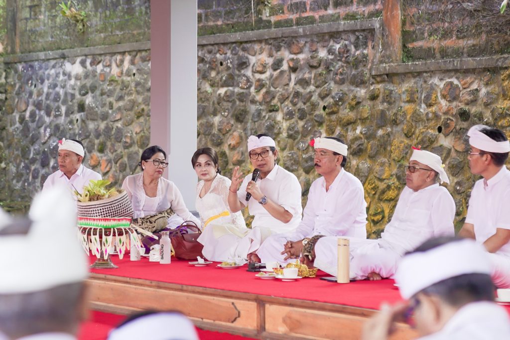 Lebih lanjut, Bupati berpesan kepada seluruh krama untuk terus menjaga persatuan dan kekompakan dalam pelestarian adat, agama, budaya, serta tradisi. Menurutnya, menjaga dan mensucikan pura merupakan tanggung jawab bersama guna mencapai kerahayuan serta menciptakan jagadhita dan santhi. “Mari bersama-sama mengaturkan restiti bhakti kepada Ida Sang Hyang Widhi Wasa dan Ida Sesuhunan yang berstana di sini. Saya pastikan pembangunan pura ini akan terus berlanjut guna meringankan beban krama Pasemetonan Arya Kanuruhan,” tegas Adi Arnawa.