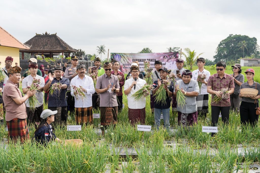 Bupati Badung I Wayan Adi Arnawa Menghadiri Kegiatan Panen Perdana Pengembangan Bawang Merah melalui Anggaran Pendapatan dan Belanja Daerah (APBD) Kabupaten Badung Tahun 2025, bertempat di Subak Padedekan, Desa Angantaka, Abiansemal, Selasa, (19/8). Selain itu, Bupati Adi Arnawa juga meninjau Jalan Usaha Tani dan saluran irigasi di Subak Padedekan.