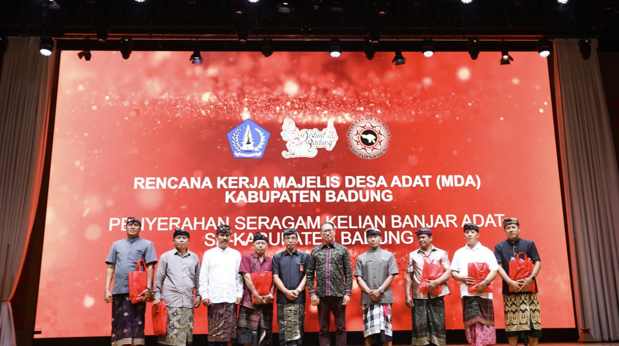 Plt. Bupati Badung I Ketut Suiasa menghadiri acara penyerahan seragam kepada Kelian Banjar Adat se-Kabupaten Badung yang berjumlah berjumlah 550