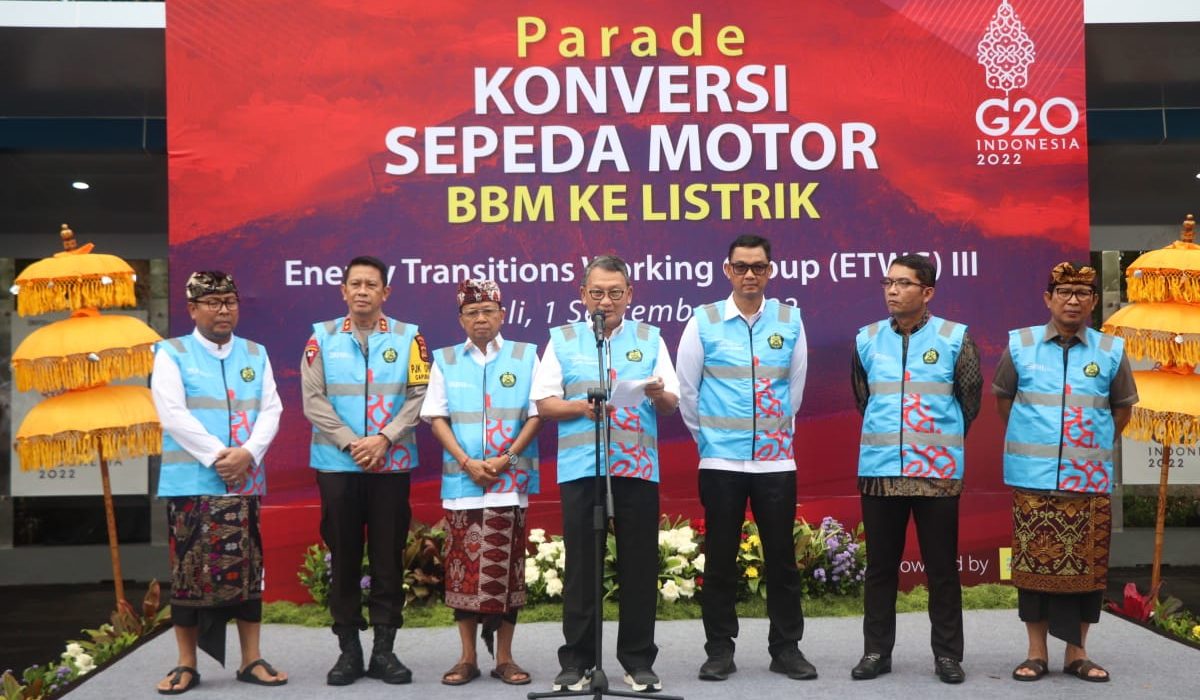 Sekretaris Daerah Kabupaten Badung I Wayan Adi Arnawa menghadiri parade konversi sepeda motor BBM ke Listrik yang dibuka oleh Menteri