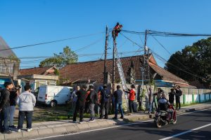 Bupati Badung I Wayan Adi Arnawa Melaksanakan Penurunan dan Pembersihan Kabel Provider (Jaringan Utilitas) di Ruas Jalan Raya Sading-Sempidi, Mengwi pada Jumat (3/10). Turut hadir